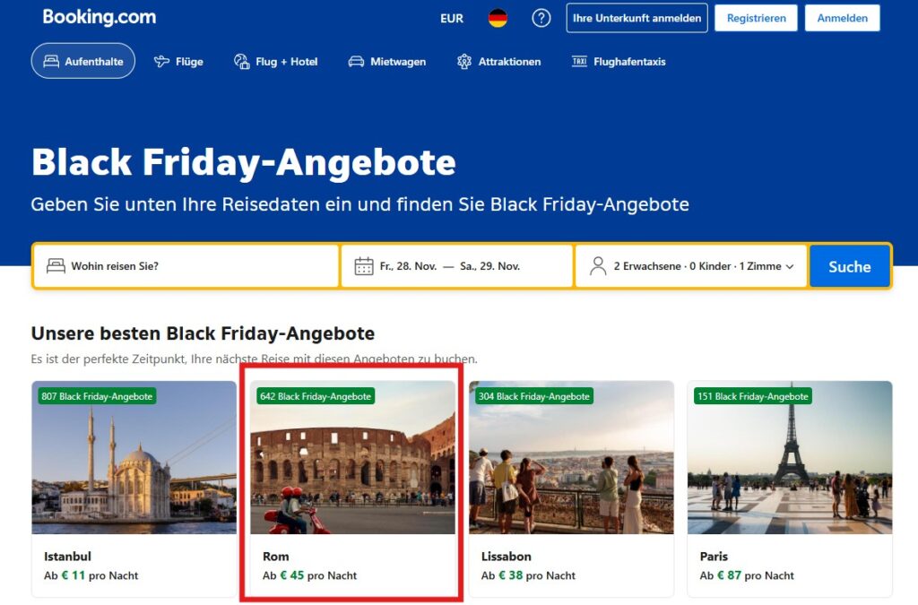 Welche Deals könnt ihr euch am Black Friday für eure Rom-Reise sichern? Was einst ein Angebotstag der Tech-Branche war, ist mittlerweile ein Branchen-übergreifender Sale-Tag geworden. Und so bieten auch viele Reiseunternehmen während der „Black Week“ Angebote an – ein Traum für Schnäppchen-Jäger! Welche davon ihr nutzen könnt, um eueren Aufenthalt in Rom günstiger zu gestalten, verrate ich euch hier.